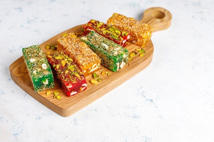 في البحرين، تُقدم الحلوى الملكية في المناسبات السعيدة والأعياد كرمز للضيافة 🎉. كما أن أفضل حلوى بحرينية تُعد يدويًا بعناية، مما يجعلها هدية تحمل الطابع الثقافي الفريد للبلاد 🇧🇭.
